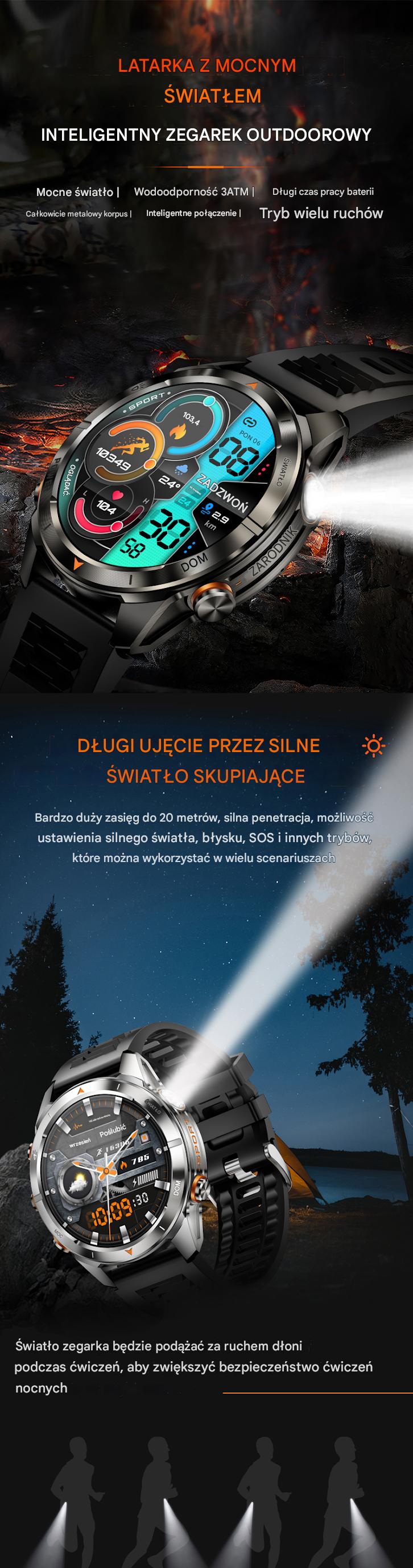 Smartwatch męski z latarką LED SAYBERG KT80 I Jedno urządzenie — setki funkcji I smart-zegarki.pl