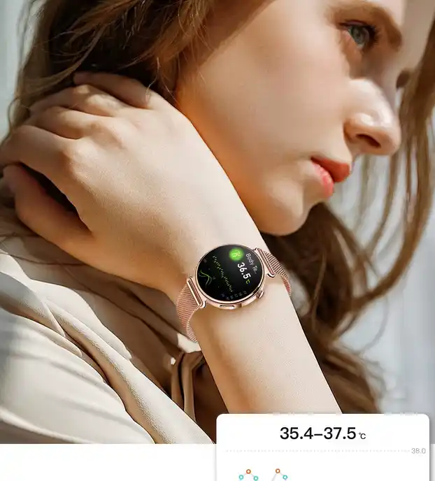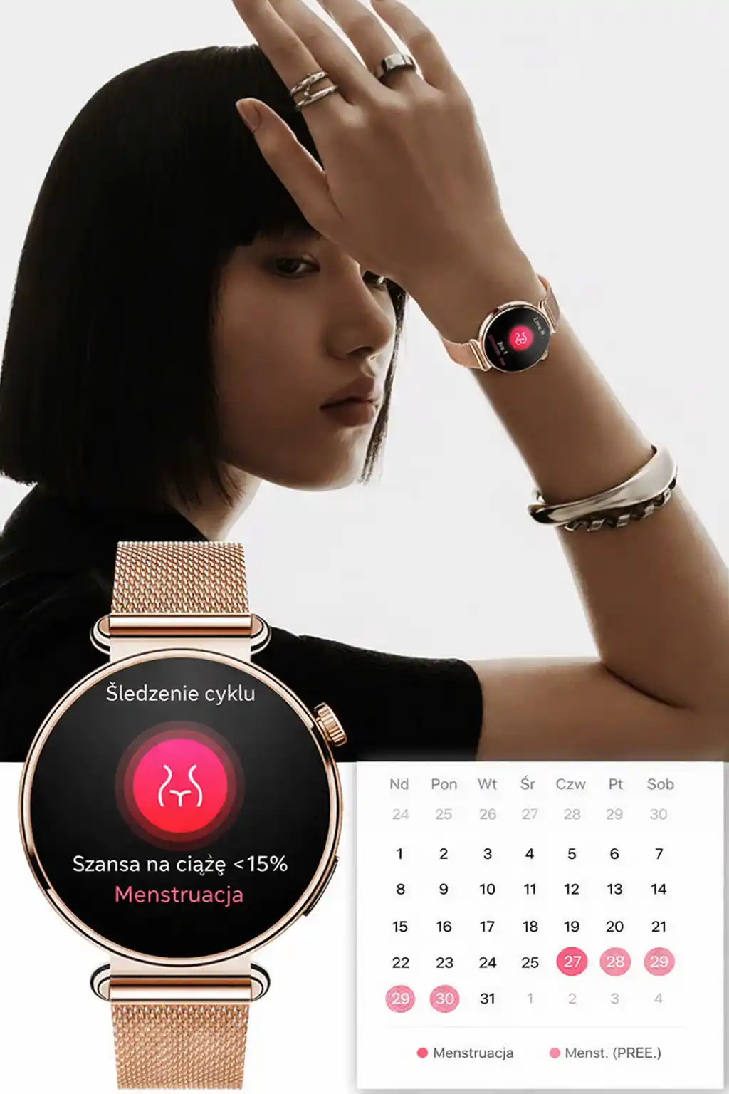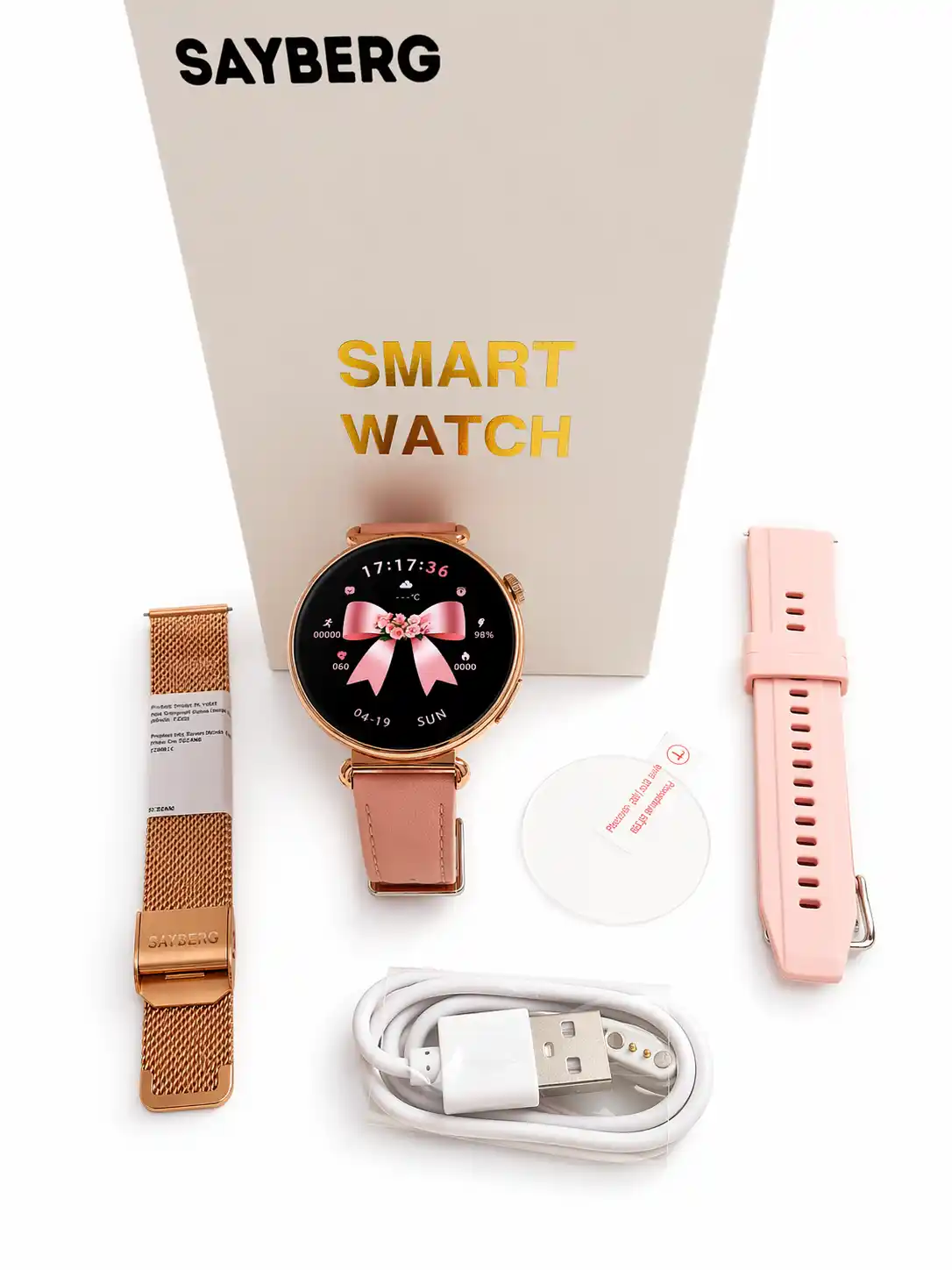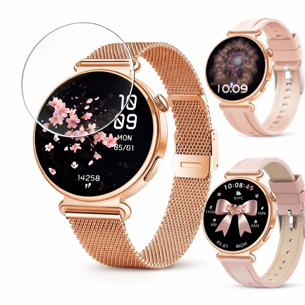 Nowoczesny smartwatch damski marki SAYBERG oferujący rozbudowane funkcje monitorowania zdrowia – w tym EKG, HRV, pomiar poziomu glukozy, ciśnienia krwi oraz tętna – a także wiele innych opcji prozdrowotnych, zamkniętych w jednym urządzeniu z polskojęzycznym interfejsem.