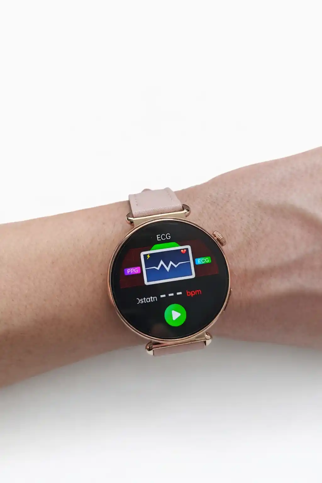 ✅ Zaawansowany pomiar EKG bezpośrednio z nadgarstka dzięki wbudowanym elektrodom.