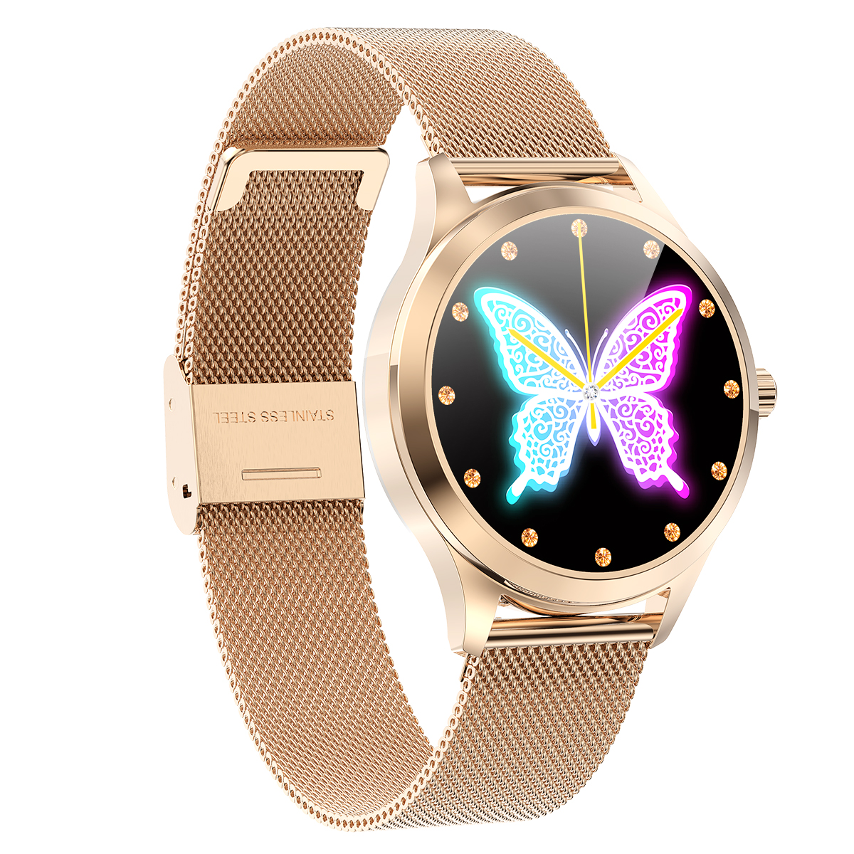 Ten nowy niepowtarzalny smartwatch LW07 ma bardzo kobiecy design, który wygląda elegancko, modnie i jest odpowiedni zarówno dla dziewcząt jak i kobiet. Posiada okrągły kształt z jednym fizycznym przyciskiem z boku. Smartwatch LW07 Mierzy 40*30*11mm i waży około 35g. Korpus zegarka oraz bransoleta został wykonany ze stali nierdzewnej.